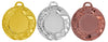 Abgebildet sind drei Medaillen Bergisch Gladbach 45 mm PK79223g-E25: eine aus Gold, eine aus Silber und eine aus Bronze, jede aus hochwertigem Material gefertigt mit einem kreisförmigen Design in exklusivem Design und einem dekorativen Rand mit leerem Mittelbereich.
