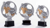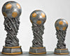 Drei goldene 3er Serie Fußball 153 mm - 173 mm PK756080-3-E25-G mit Fußballemblemen auf Marmorsockeln, in einer Reihe angeordnet und mit exklusivem Design und hochwertigem Material.