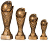 Vier Trophäen der 4er-Serie Fußball in ansteigender Größe, jede mit einem goldenen Fußball auf einer konischen Säule mit Sternenmotiv, auf quadratischen Sockeln aus hochwertigem Material.