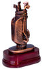 Ein kleiner bronzener Trophäe-Golfputter 130 x 130 mm PK737054-62589 mit Golfthema zeigt einen Golfball und einen Schläger auf einem Holzsockel und stellt sein exklusives Design und hochwertiges Material zur Schau.