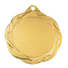 Ein Satz von drei Medaillen Recklinghausen 45 mm PK79076g-E25: Gold links, Silber in der Mitte und Bronze rechts. Jede Medaille zeigt ein exklusives Design mit einem Lorbeerkranzmotiv und einer leeren runden Mitte, was ihre besondere Handwerkskunst hervorhebt.