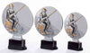 Drei Basketball-Trophäen der 3er-Serie aus hochwertigem Material mit Sternen und Basketball-Motiven auf sternförmigen Hintergründen, in unterschiedlichen Höhen auf weißem Hintergrund angeordnet.