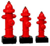 Drei Trophäen mit einem silbernen Feuerwehrauto über einem rot-goldenen Flammendesign, montiert auf schwarzen Sockeln, zeigen ein exklusives Design: 3-er Serie Feuerwehrauto 160 mm – 200 mm PK739144-42-3.