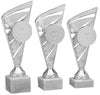 Drei silberne Fußballtrophäen mit goldenen Fußbällen, jeweils ein exquisiter 3er Serie Fußball 310 mm - 370 mm PK756030-3, gekrönt mit Figuren von Fußballspielern in verschiedenen Posen.