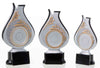Die 3-er Serie Sonstiges 160 mm – 200 mm PK739264-62-3-E50 umfasst drei silberne und goldene Trophäen unterschiedlicher Höhe, die auf schwarzen rechteckigen Sockeln präsentiert werden.