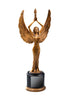 Eine goldene Adlerstatue mit ausgebreiteten Flügeln, die auf einem Sockel thront und eine Schriftrolle in den Krallen hält. Dieser exquisite Trophäen-Siegesadler 218 mm PK738755-62594 verfügt über exklusives Design und ist aus hochwertigem Material gefertigt.